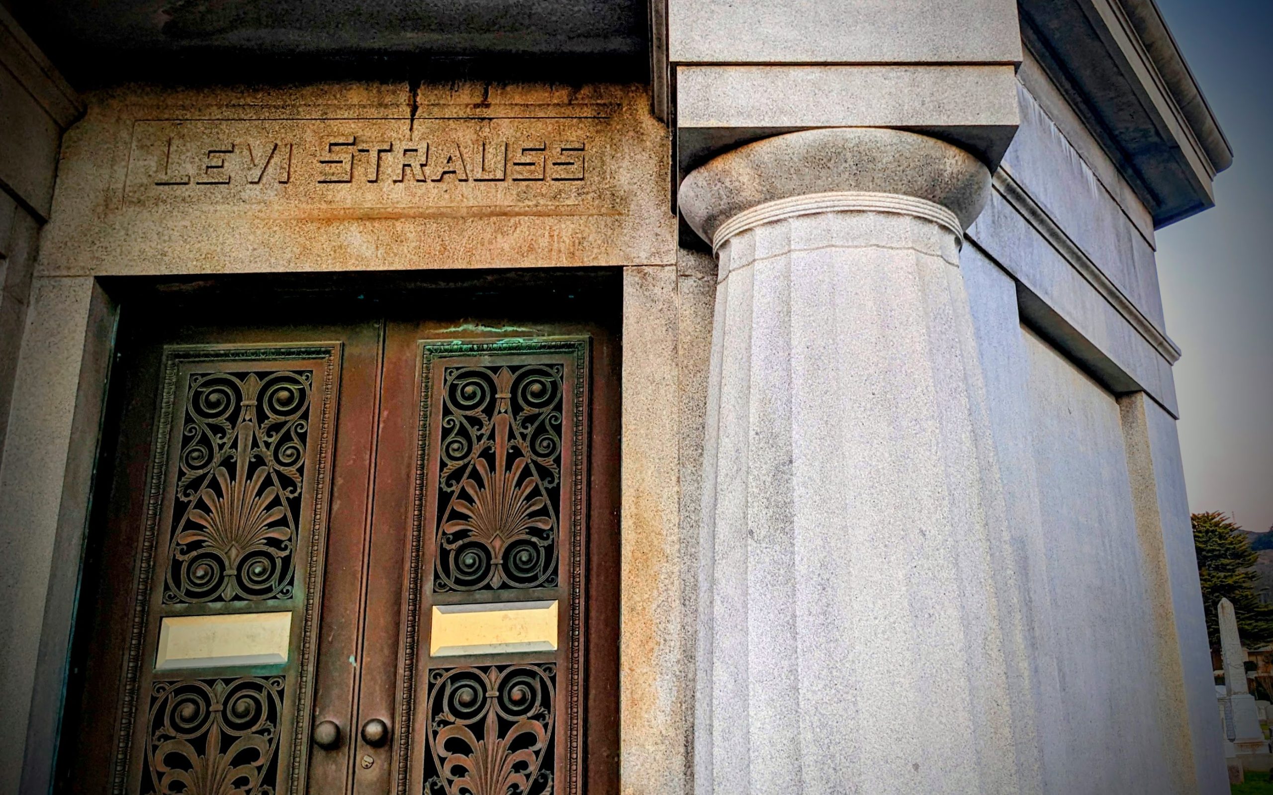 Taking a moment to read the room before discussing my business in polite company, I looked around the mausoleum to where Mr. Strauss now resides and found the information I was searching for etched in white marble: LEVI STRAUSS — BORN 1829 – DIED 1902.