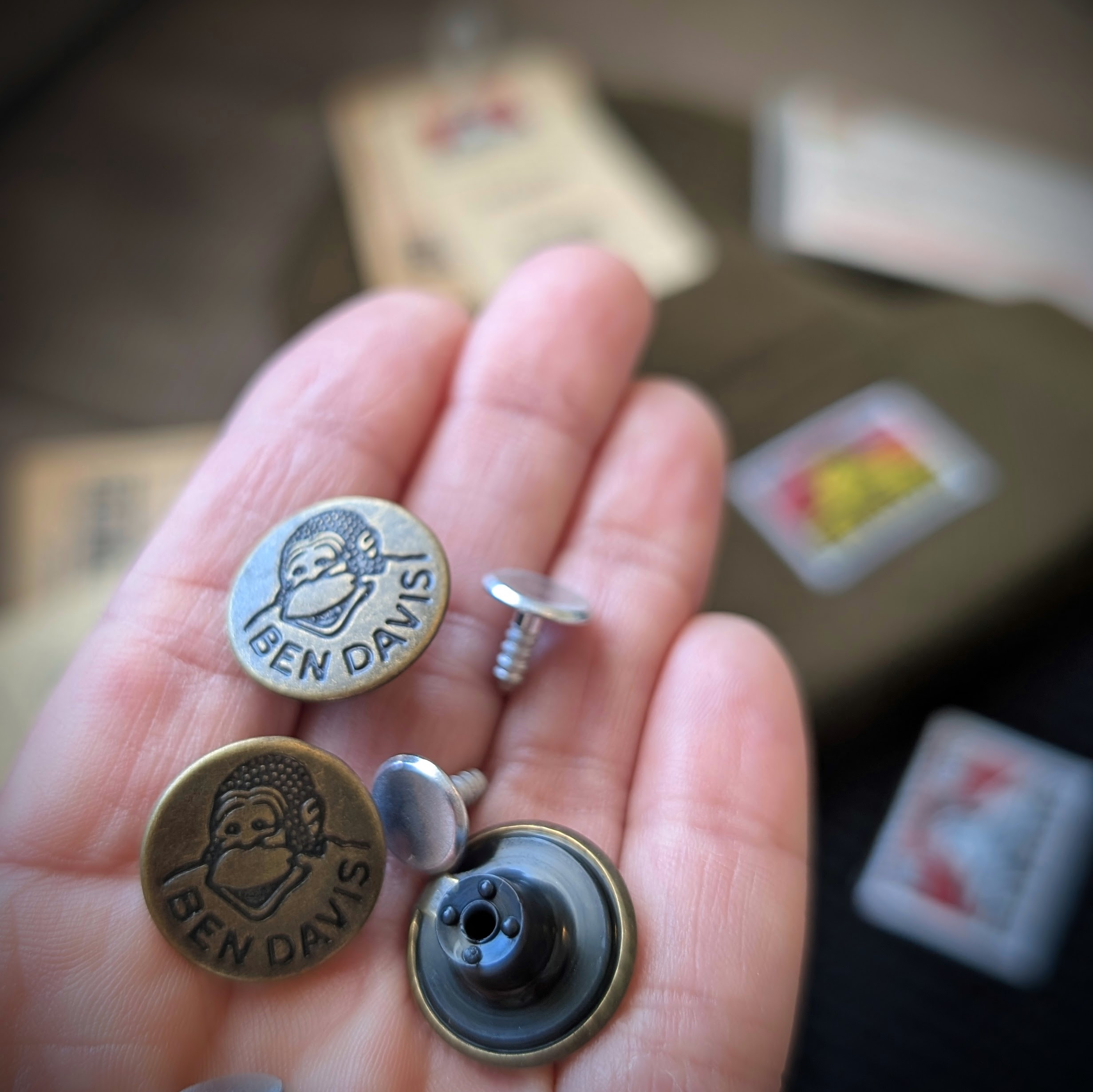 Recently, as the summer fog rolled into San Francisco, I ordered some Ben Davis beanies to stay warm and needed to spend another $3 to hit free shipping. I spotted something called “suspender buttons” for $4 and bought them. When the package arrived, I poured out the contents of a small bag into my palm, and I could hardly believe my eyes.