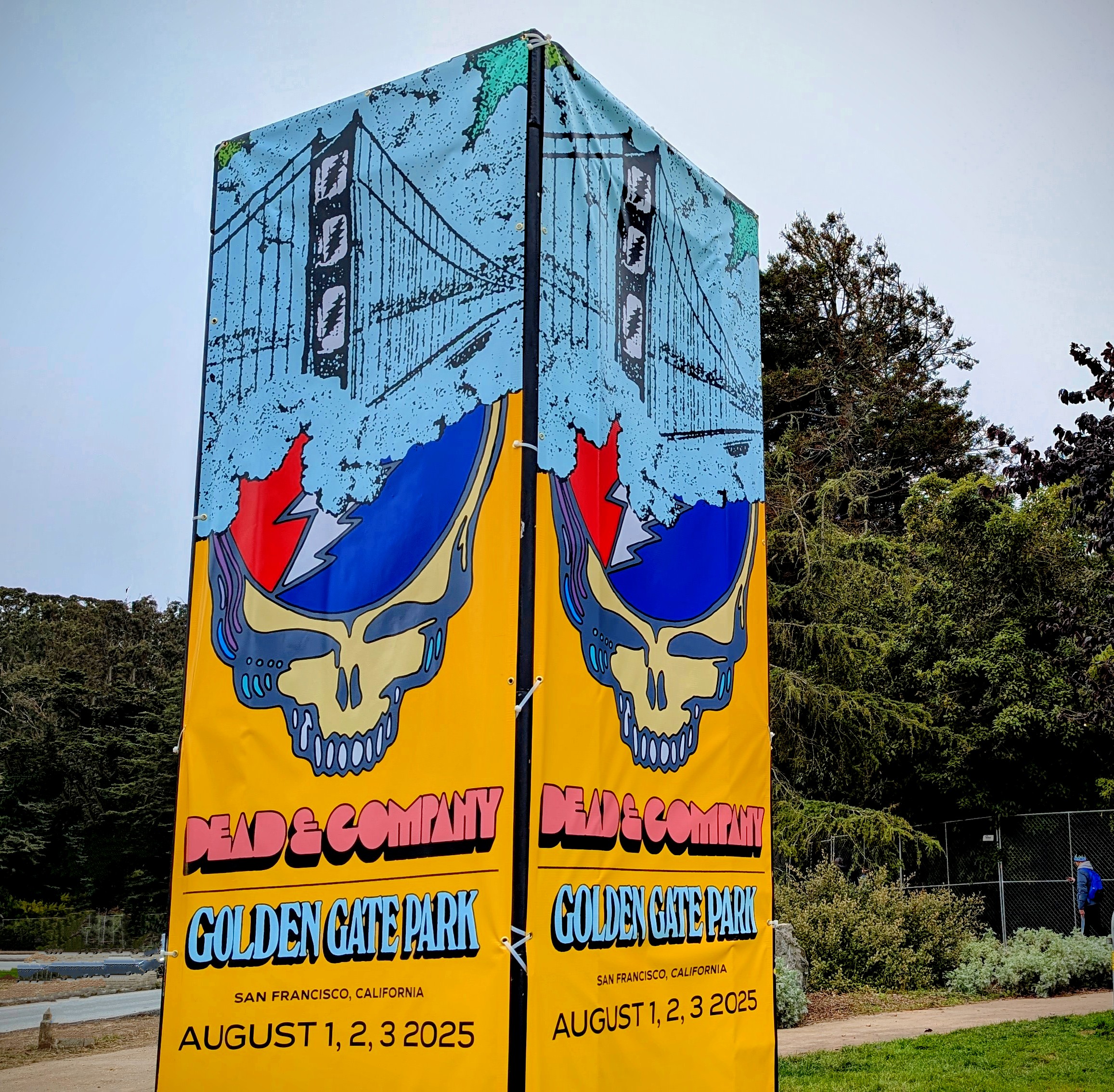 The same magic happened when Dead & Company played their final three shows in Golden Gate Park in August 2025. When I noticed that tickets had become available for the sold-out performances, I bought super VIP “Golden Road” passes for the first and last shows. I invited my brother to join me, but he told me his concert-going days were already behind him. With my fella out of town, I walked the last few blocks of my long spiritual crossing alone, and made up for lost time.