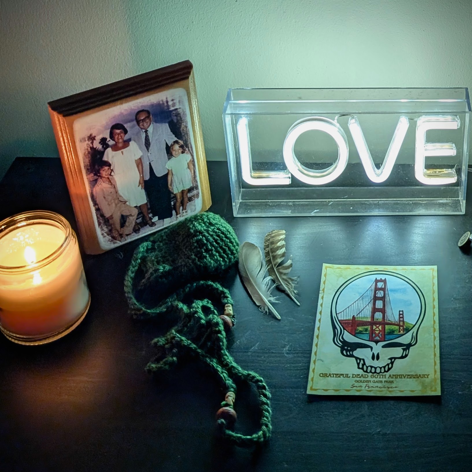 In a special moment I’ll never forget, he gave me an olive green medicine pouch that had been a sacred part of his own healing journey. He wanted me to have it for mine. As we bonded over the music that I had now come to also love, we watched videos of old concerts while he told me what it was really like to leave home and follow the Dead. I looked at the gentle, kind person I’d distanced myself from for decades—and realized with a shock of joy that we had actually become a lot alike.