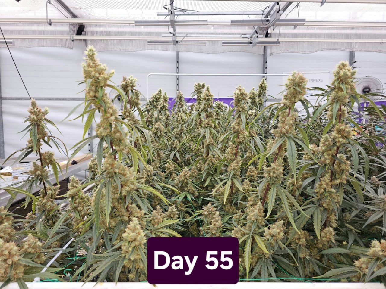 The No-Veg technique uses the natural stretch of flowering cannabis to increase flower growth while diminishing leaf growth. This terpinolene-dominant phenotype 50-day Haze, AG2 is terpinolene dominant