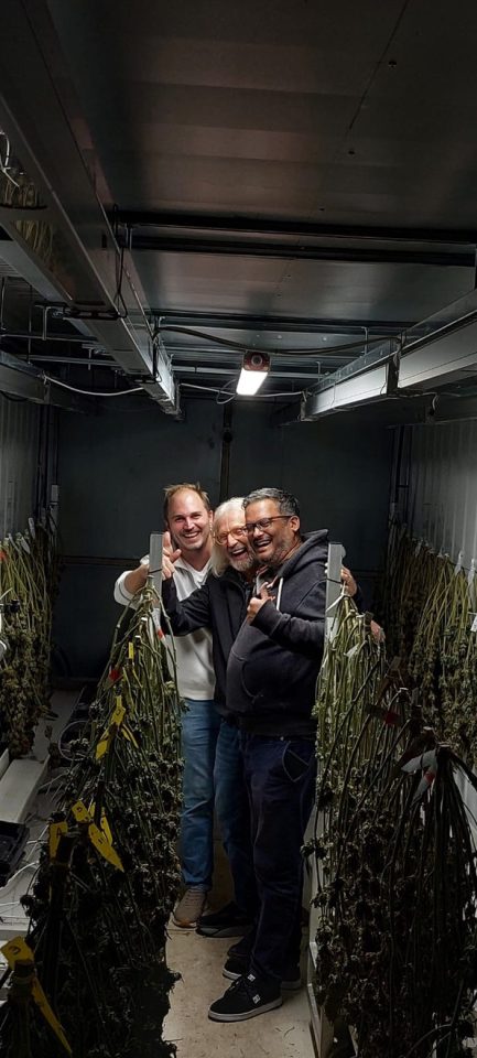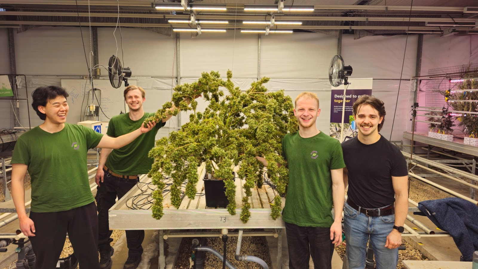 Interns and employees pictured L to R are Seongbae Park, Dennis Laidlaw, Timo Hoofwijk and Ramon van Esch showing a Kerala plant grown in the Innexo research center. The South Indian landrace was grown using the No-Veg technique and harvested at 114 days. Kudos to Mr. Park and Mr. Hoofwijk for their trials and expert data analysis.
