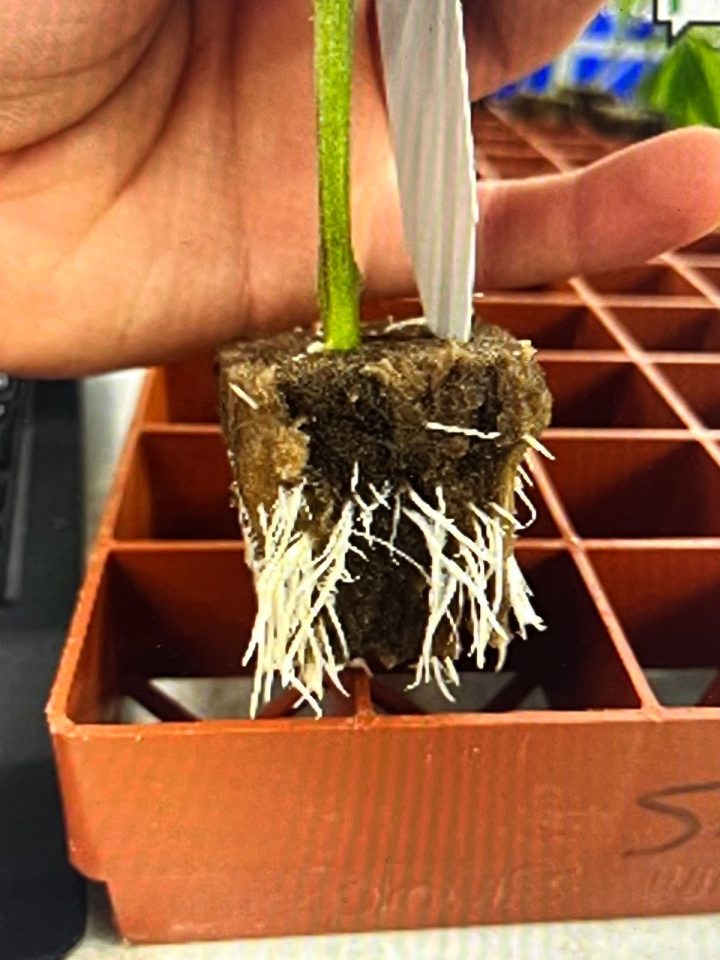 Example root score 3 – 20-30 visible main root tips (Hoofwijk, August 2025). Optimal, perfect root to plant.