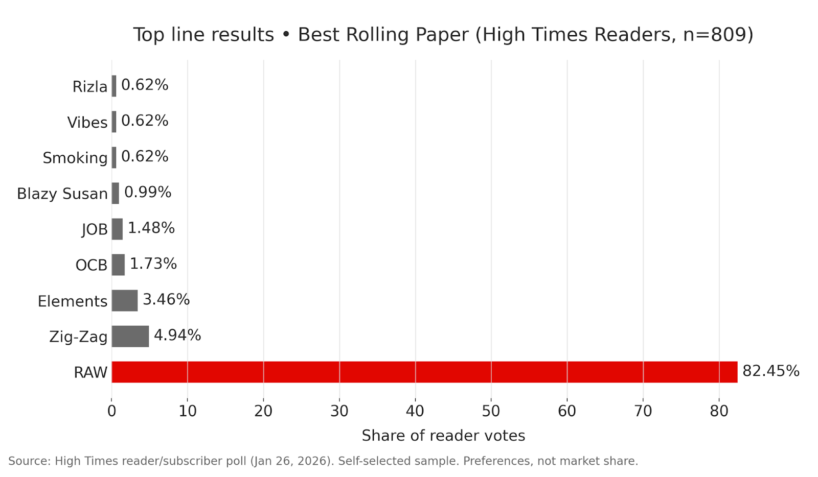 A directional snapshot of preference inside our community. Not market share. Not a lab test. One clean signal from people who love to roll and smoke.