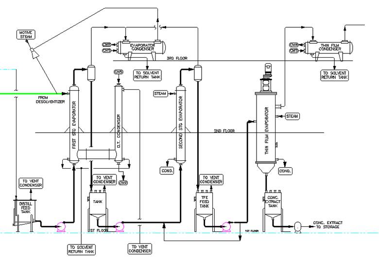 • Final stripping stage: Uses a thin‑film evaporator (TFE) or conventional stripping column. Depending on temperature and residence time, partial decarboxylation may occur.